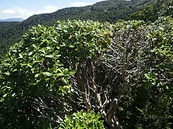 Olearia colensoi is currently classified as "Not Threatened" in New Zealand, reflecting its widespread distribution and abundance in suitable habitats. The species remains extensively dominant in the subalpine belt across high-rainfall areas of both main islands and Stewart Island, where it forms characteristic dense thickets. However, like all native species, it faces potential threats from habitat modification, invasive species competition, and climate change impacts. The altitudinal and latitudinal range of the species provides some resilience to climate warming, as populations can potentially migrate upward or southward. Browsing pressure from introduced mammals like deer and goats can impact regeneration in some areas. Conservation efforts focus on maintaining intact subalpine ecosystems and controlling invasive species. The species' ability to rapidly colonize disturbed sites makes it valuable for restoration projects, and it is commonly cultivated in nurseries for revegetation programs. Its robust nature and wide ecological amplitude suggest it will remain secure in the wild for the foreseeable future.